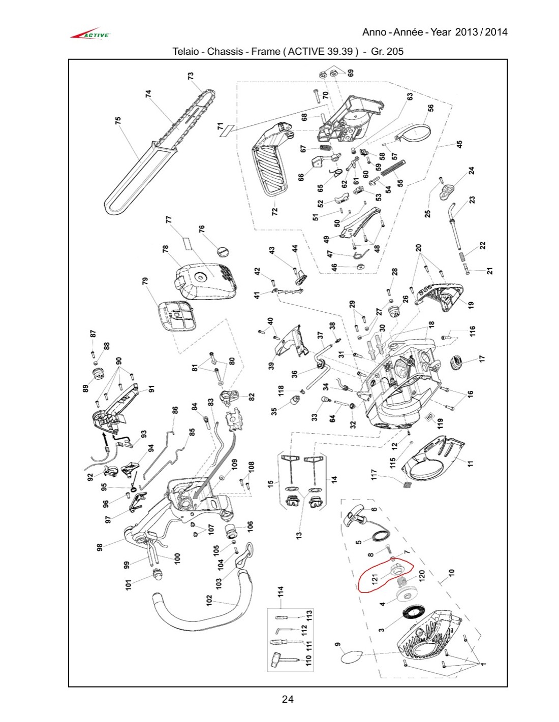 Poulie de lanceur tronconneuse active 39.39