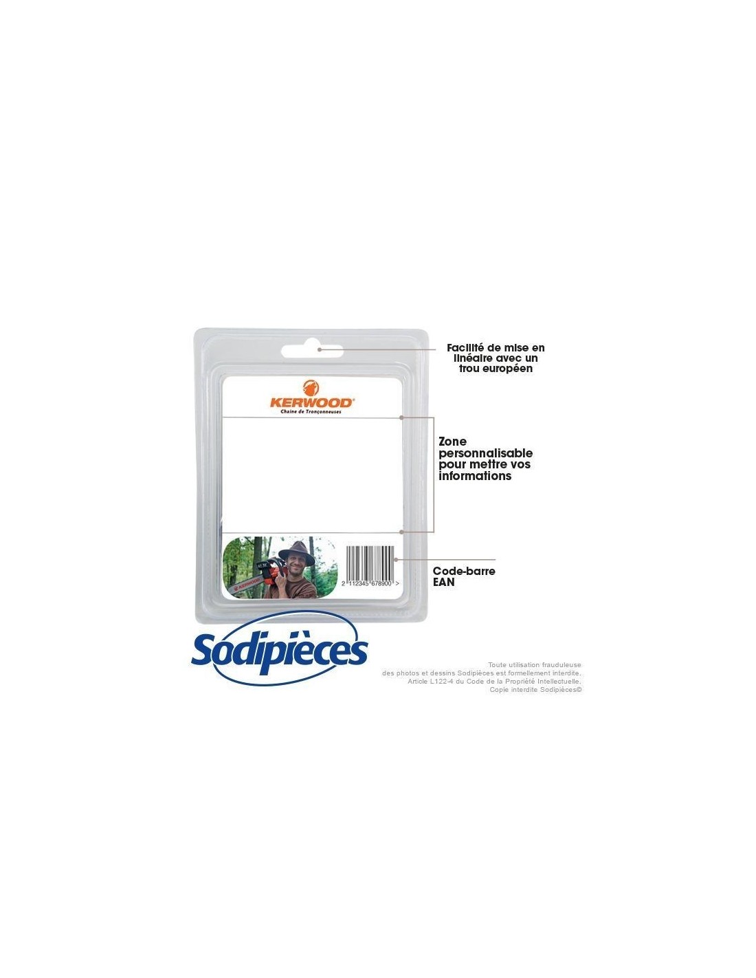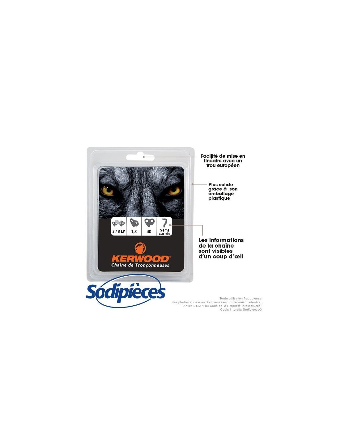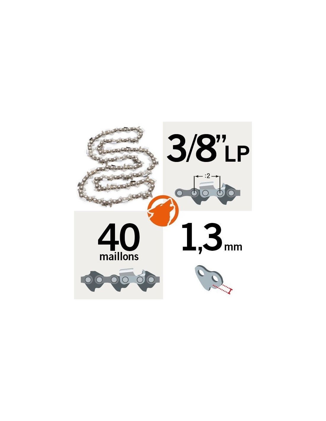 Chaîne tronçonneuse KERWOOD 40 maillons 3/8"LP, 1,3mm, modèle semi carrée