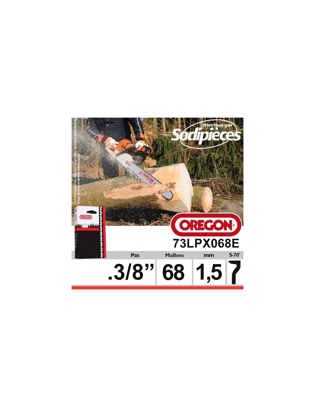 Chaîne tronçonneuse 73LPX068E OREGON Super 70. 3/8". 1,5mm. 68 maillons