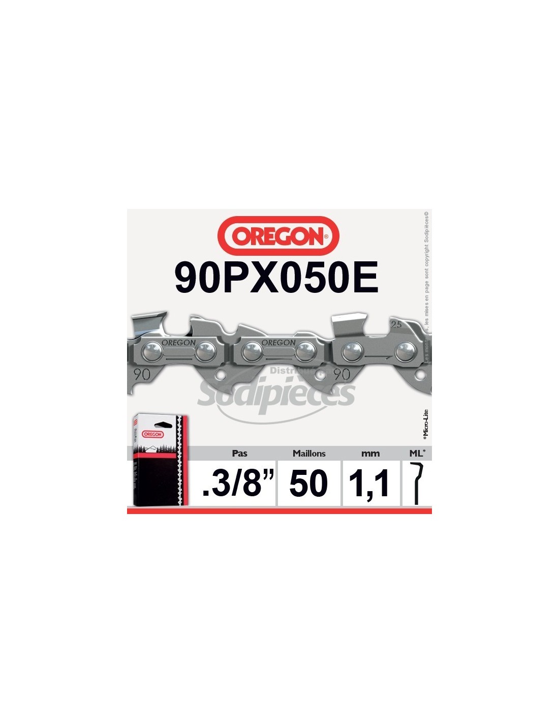 Chaîne tronçonneuse 90PX050E OREGON. 3/8". 1,1 mm. 50 maillons