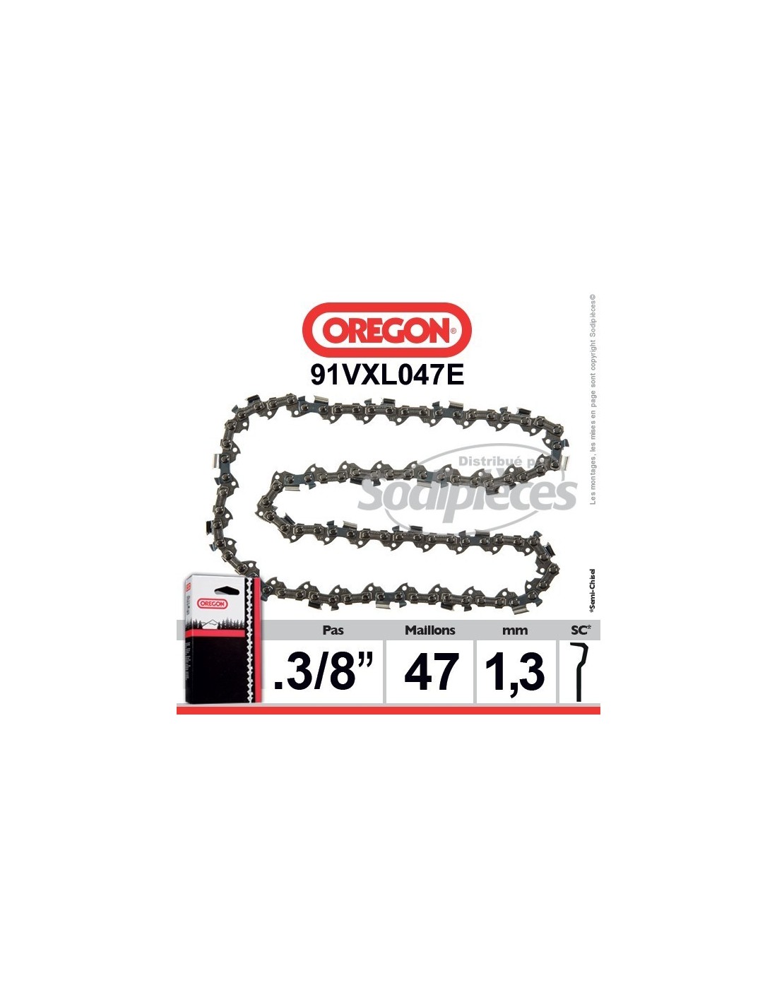 Chaîne tronçonneuse 91VXL047E OREGON. 3/8. 1,3mm. 47 maillons"