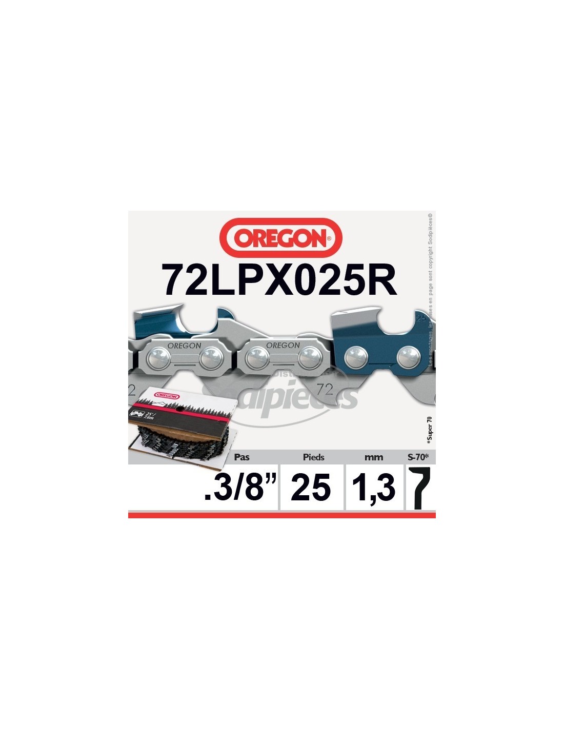 rouleau de Chaîne 72LPX025R OREGON Super 70. 3/8. 1,3mm. 25 pieds"