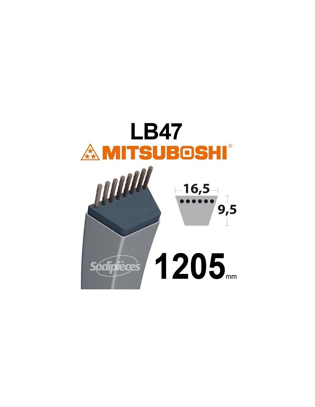 Courroie tondeuse LB47 Mitsuboshi. 16,5 mm x 1205 mm