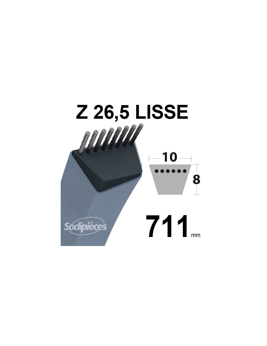 Courroie tondeuse Z26,5 Trapézoïdale. 10 mm x 711 mm.
