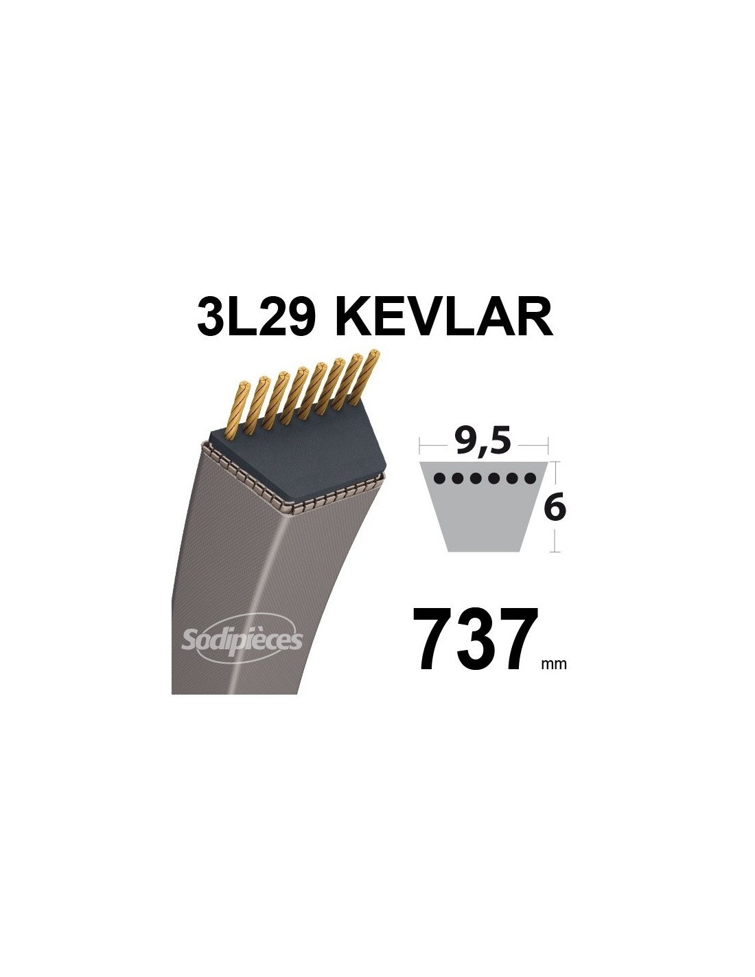 Courroie tondeuse 3L290 Kevlar Trapézoïdale. 9,5 mm x 737 mm.