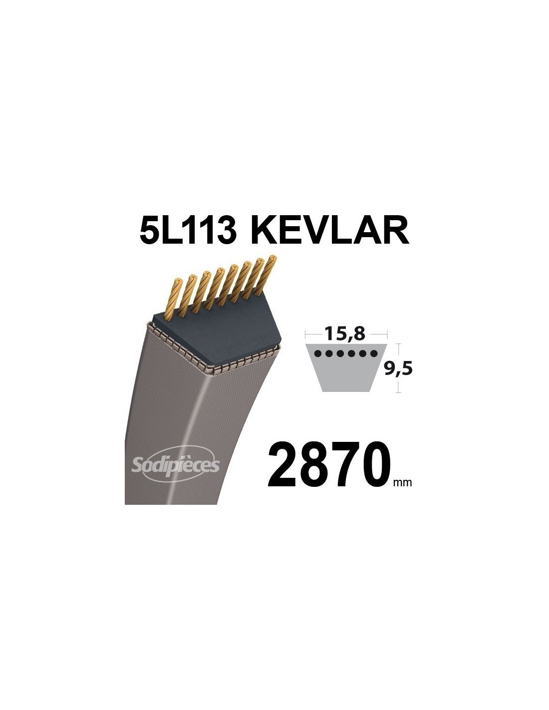 Courroie tondeuse 5L113 Kevlar Trapézoïdale. 15,8 mm x 2870 mm.