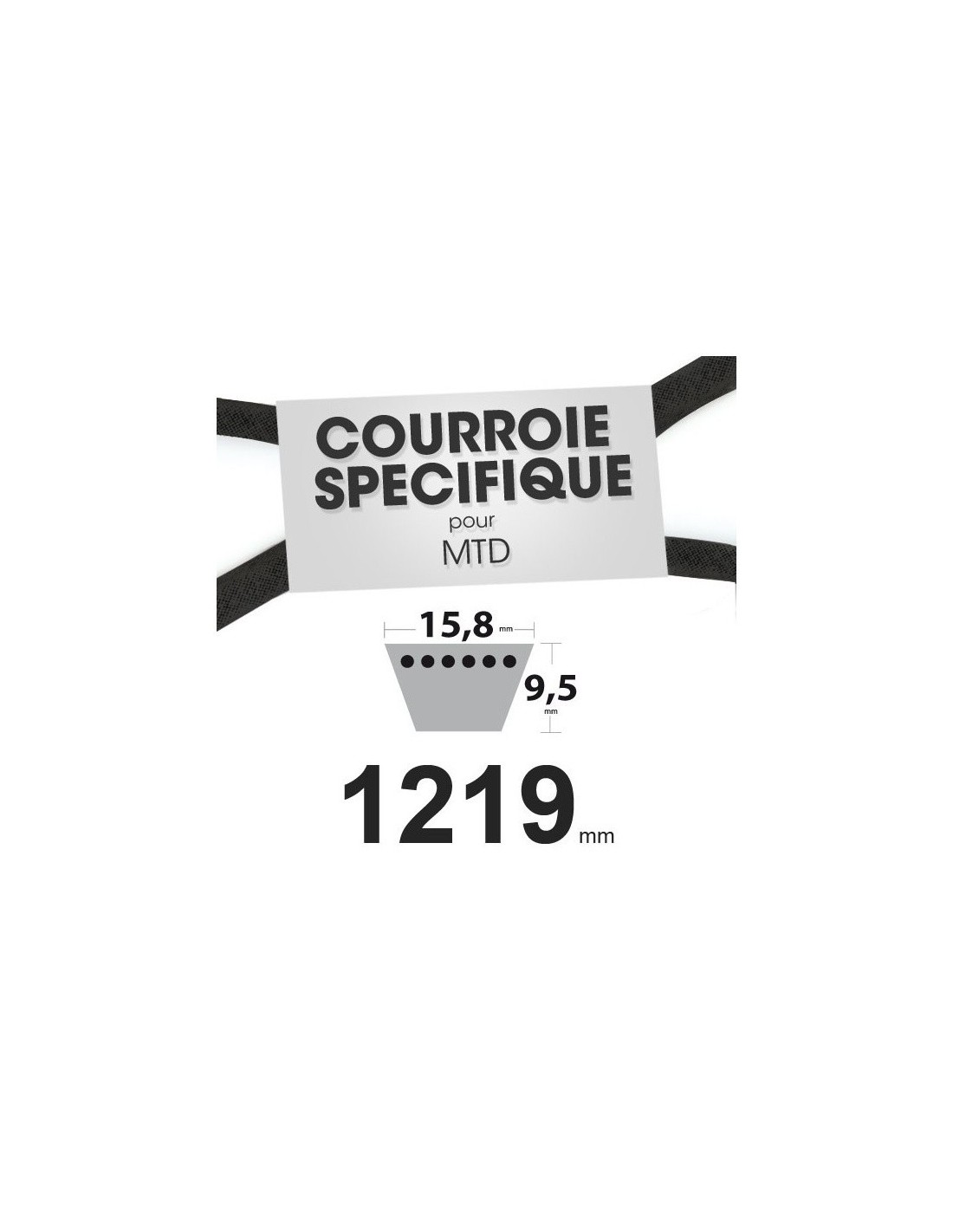 Courroie tondeuse spécifique MTD 7540370. 15,8 mm x 1219 mm.