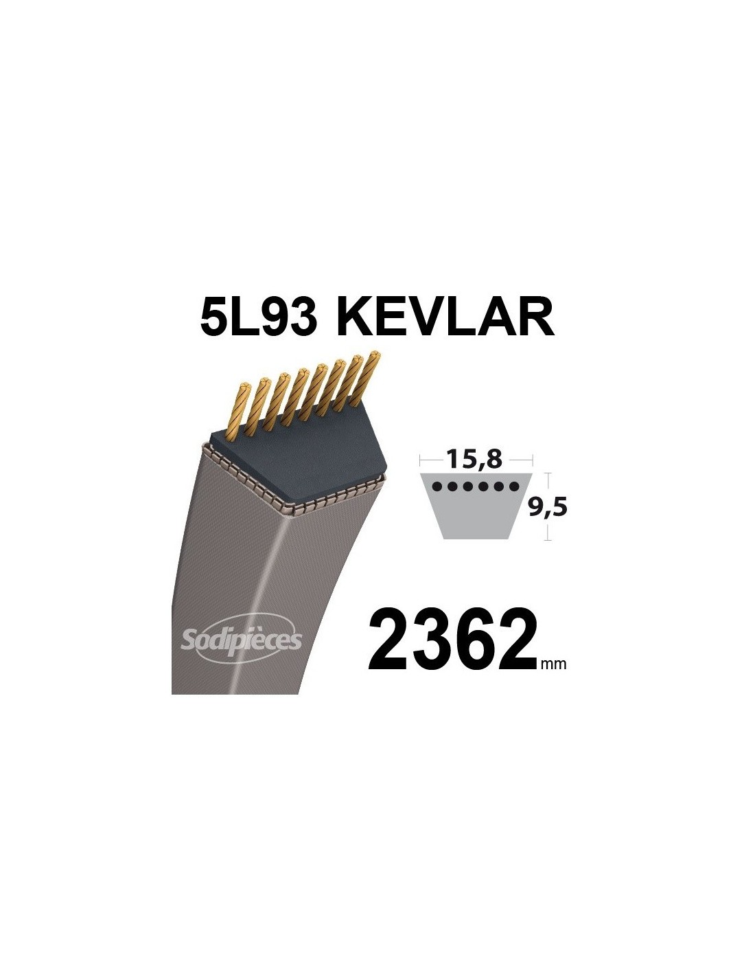 Courroie tondeuse 5L93 Kevlar Trapézoïdale. 15,8 mm x 2362 mm.