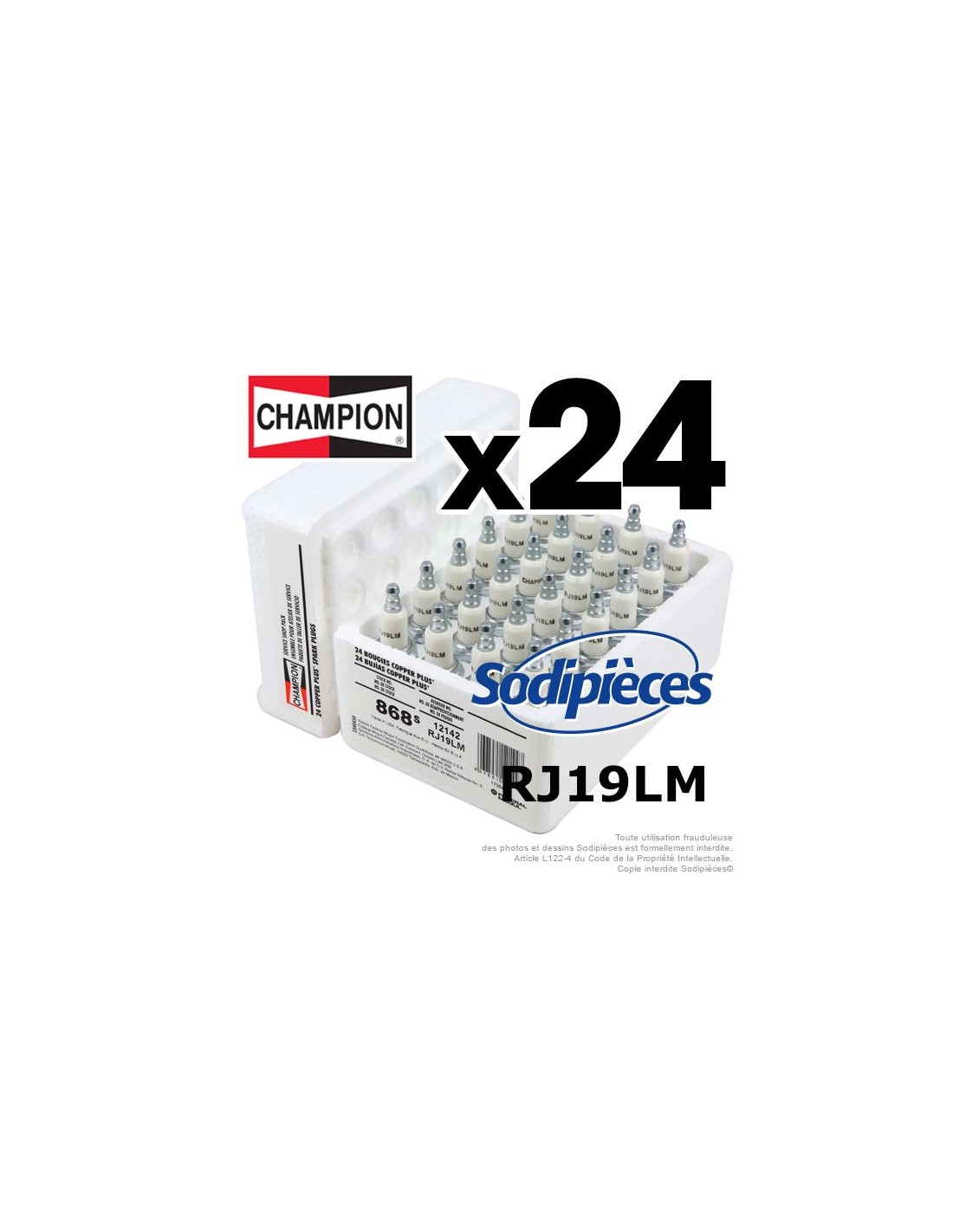 Bougie Champion CCH868S remplace RJ19LM/W24 par 24