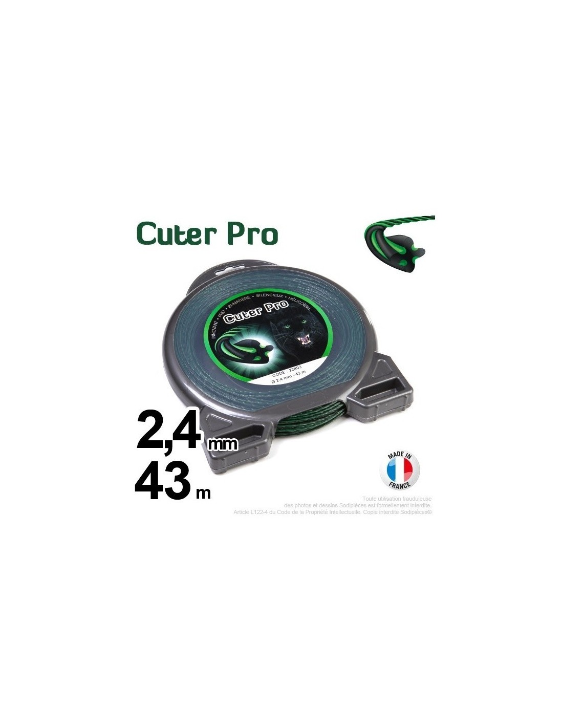 Fil débroussailleuse Cuter' Pro ®. Coque 2,4 mm x 43 m. Hélicoïdal.