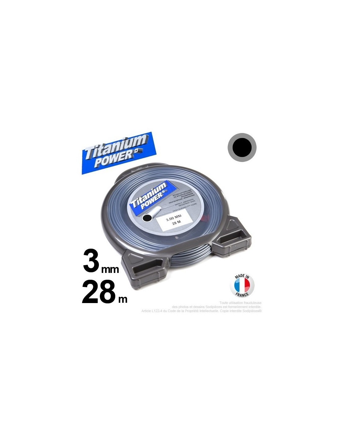 Fil débroussailleuse Titanium ®. Coque rond 3 mm x 28 m