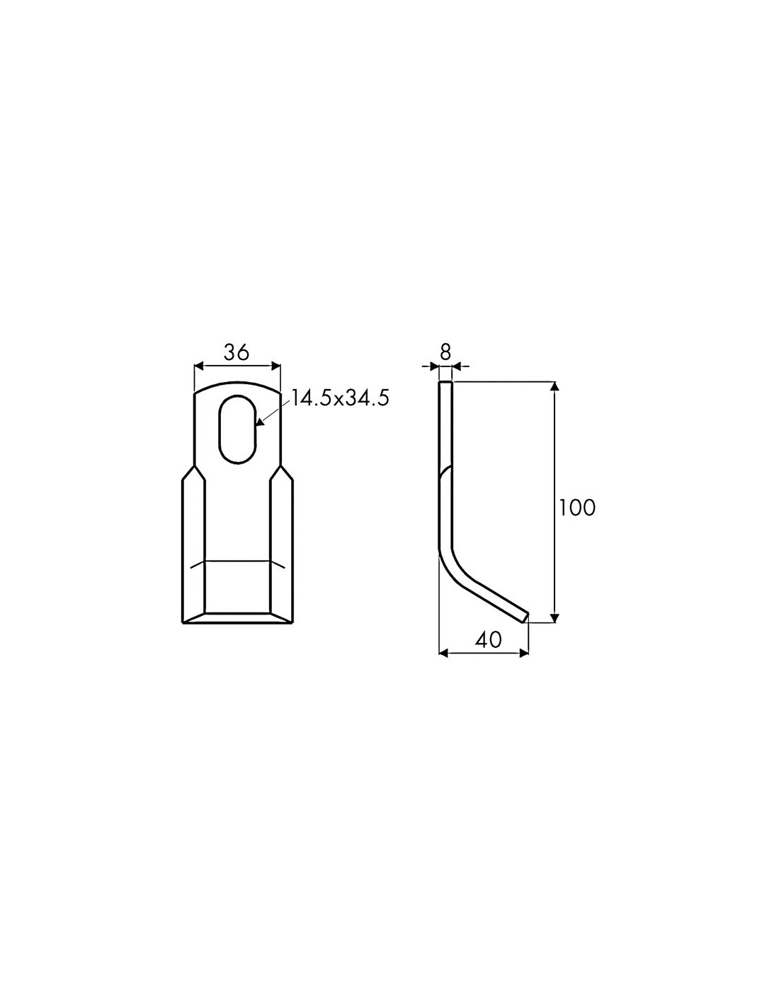 COUTEAU DE DEBROUSSAILEUSE RENFORCE 36X8X100 MM TROU 14,5X34,5MM