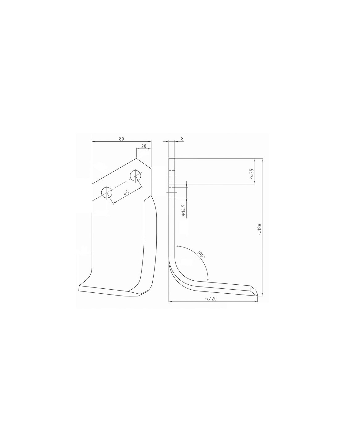 LAME DE FRAISE EQUERRE 80X8 EA46 T14,5 GAUCHE TYPE MALETTI