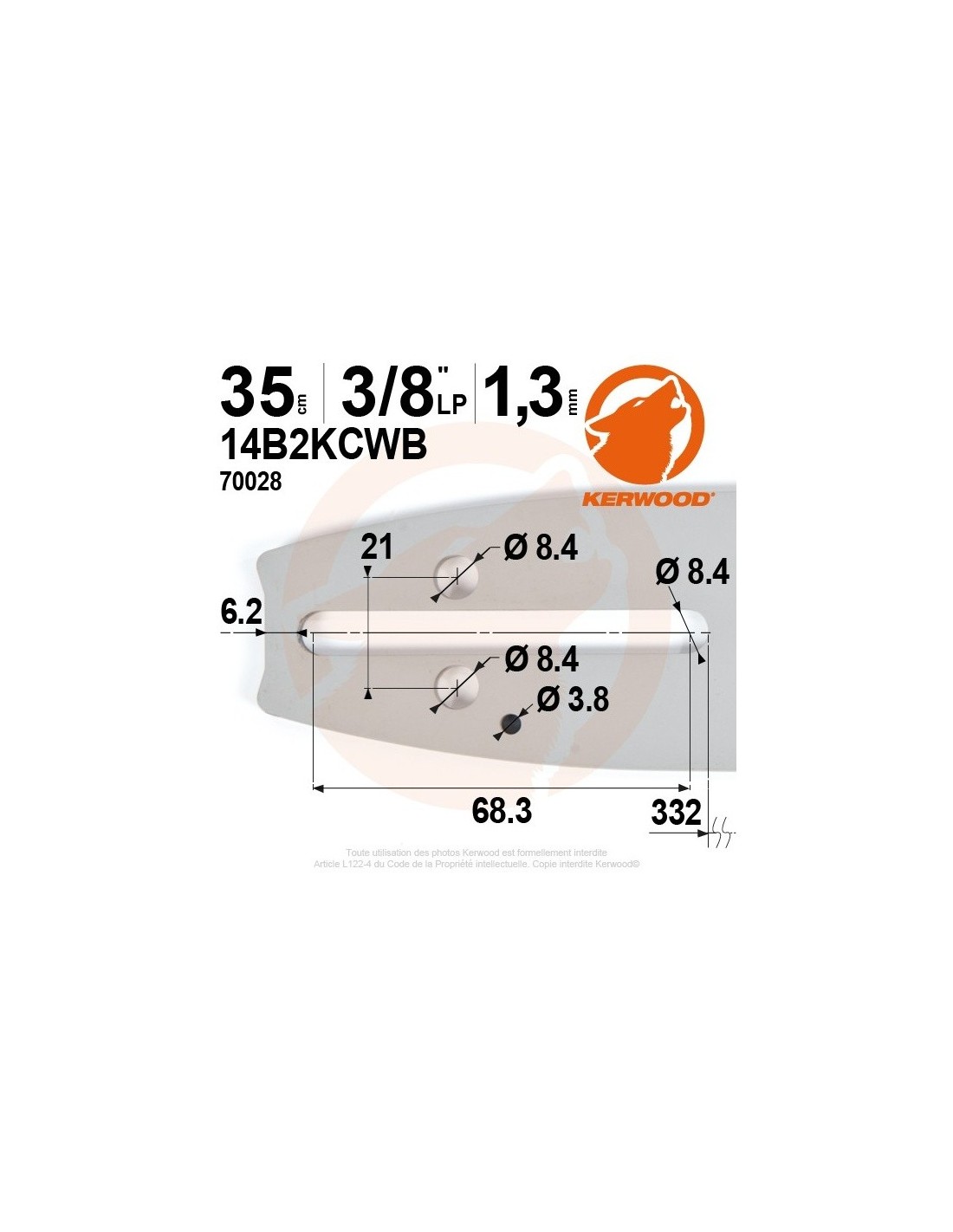 Guide tronçonneuse Kerwood. 35 cm. 3/8"LP. 1,3 mm. 14B2KCWB