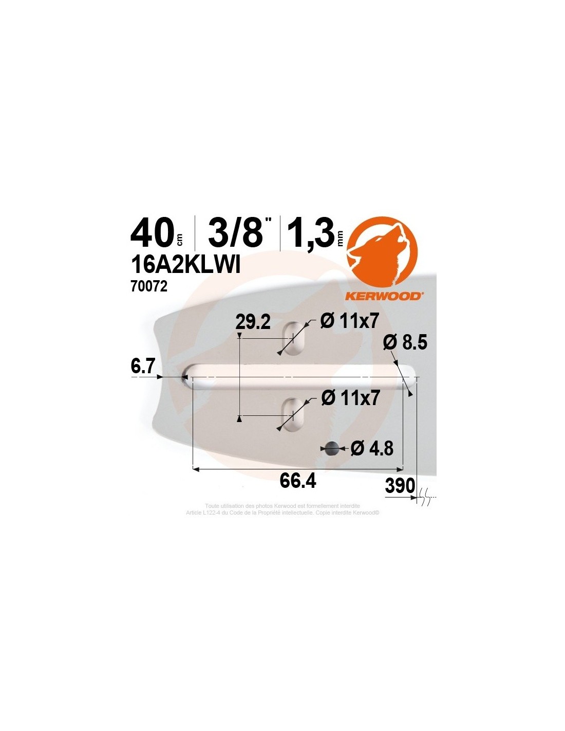 Guide tronçonneuse Kerwood. 40 cm. 3/8". 1,3 mm. 16A2KLWI