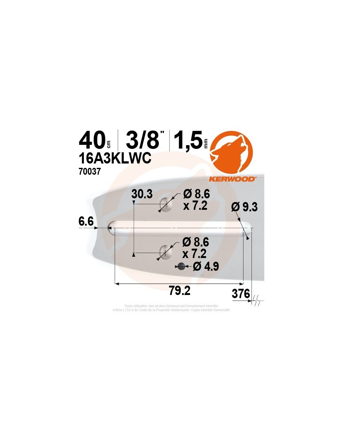 Guide tronçonneuse Kerwood. 40 cm. 3/8". 1,5 mm. 16A3KLWC