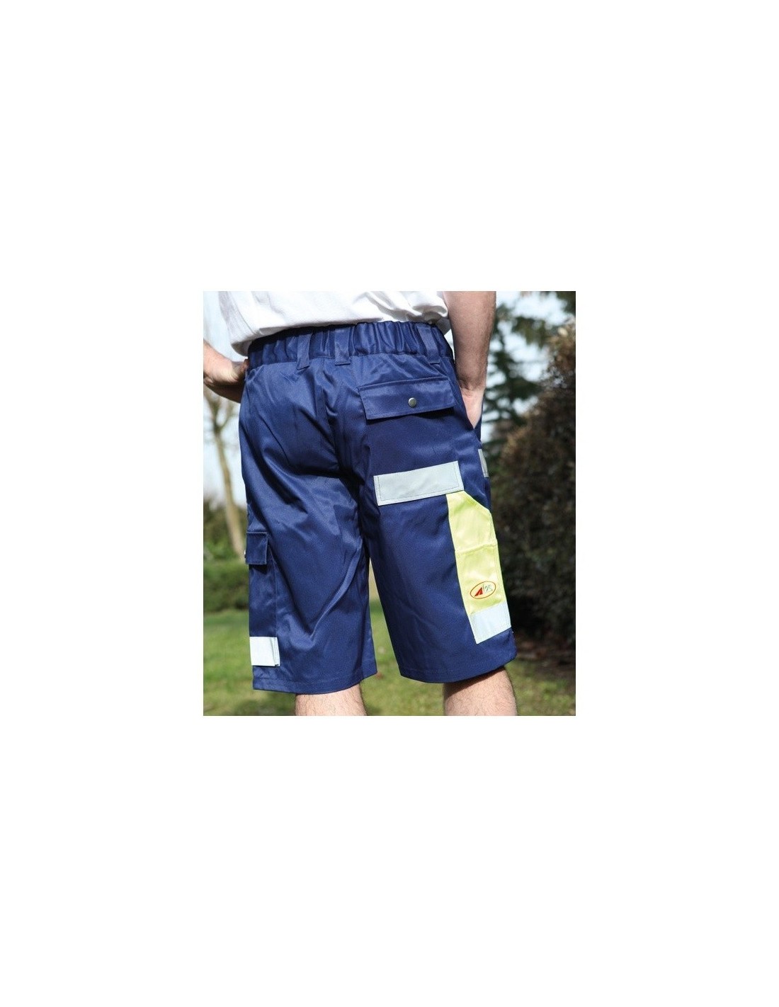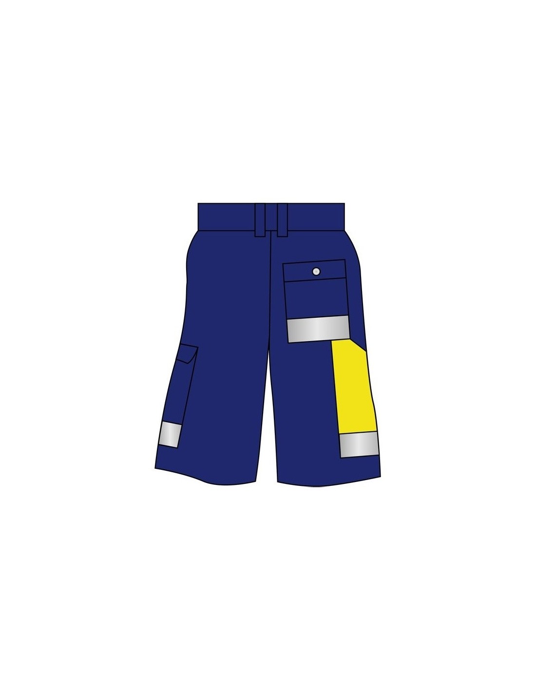 Tissu poly-coton. Poche treillis. Pocheporte-mètre contrastée. Poche dos plaquée. 2 poches repose-mains.Triangle d'aisanceau niveau de l'entrejambe. Empiècements rétroréfléchissants.