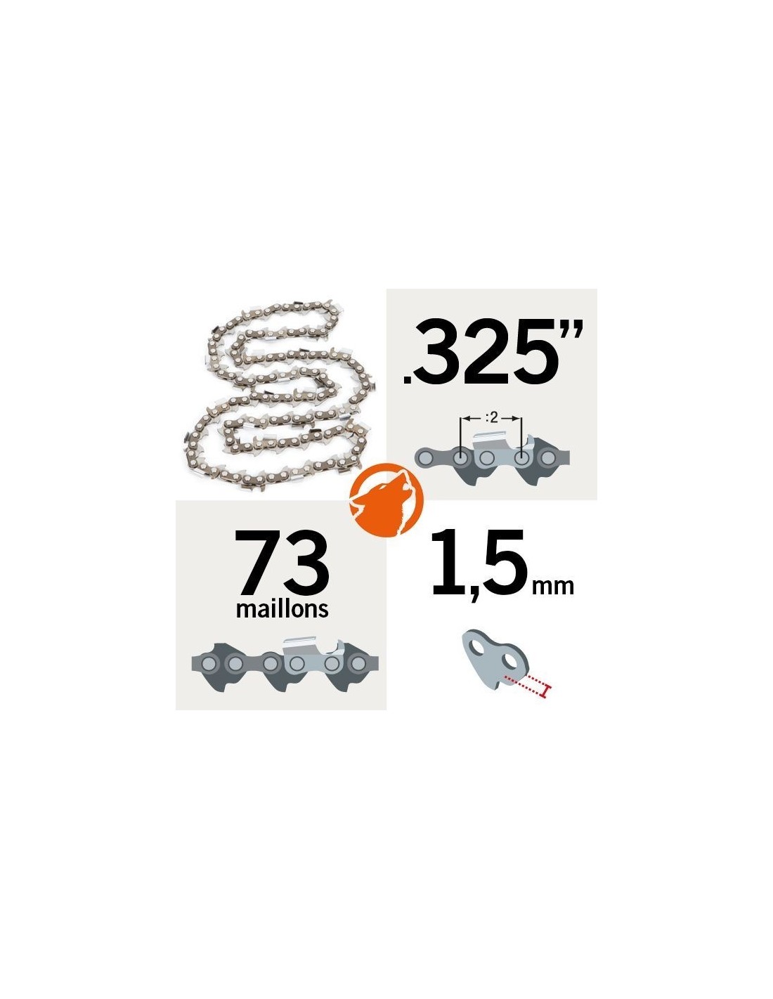 Chaîne tronçonneuse KERWOOD 73 maillons 325", 1,6 mm, modèle semi carrée