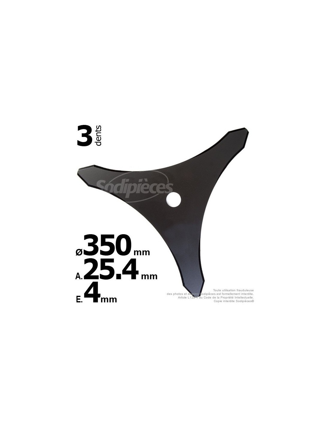 Lame 3 dents. Ø 350 mm. Al 25,4 mm. Ep 4 mm.