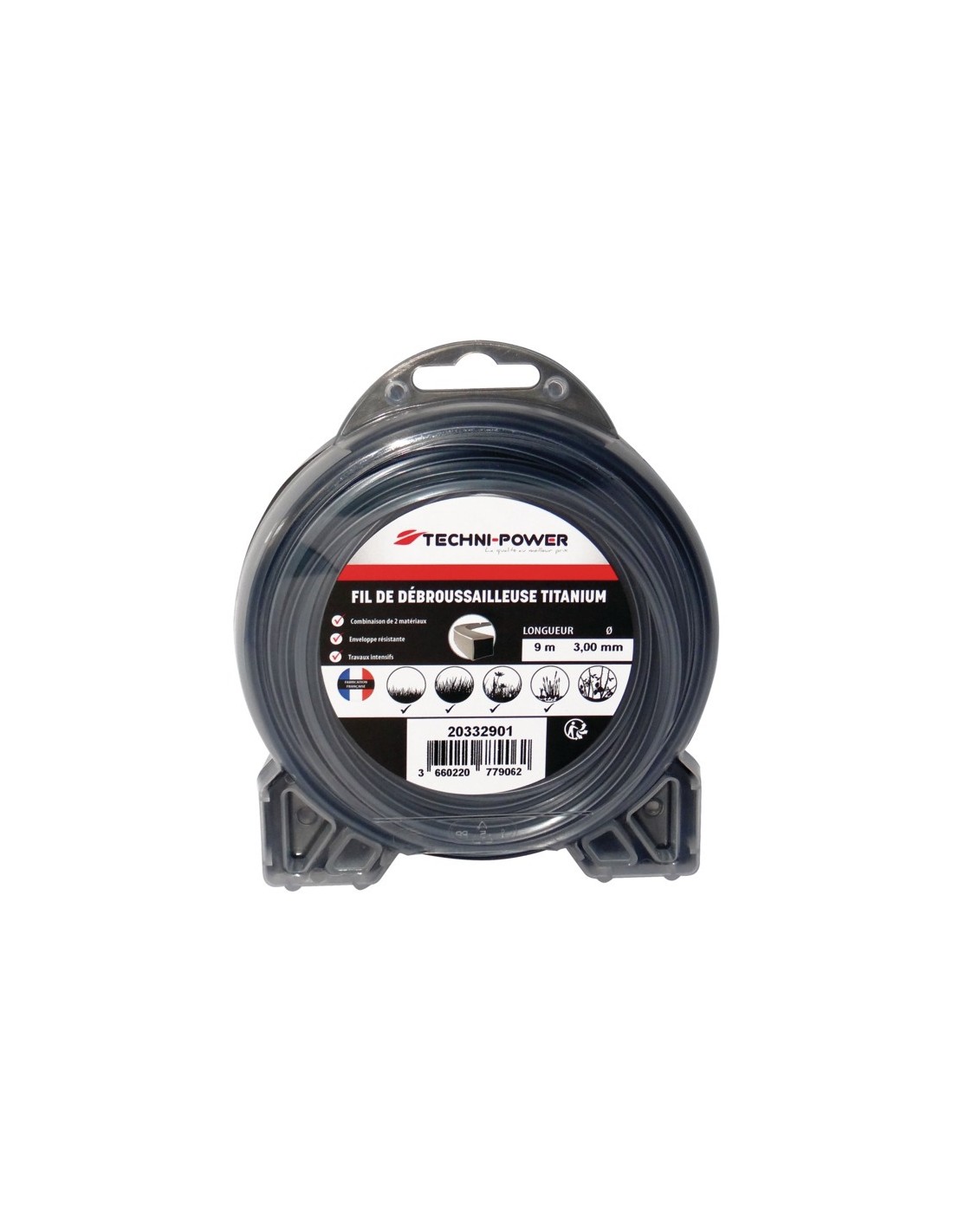 FIL DE DEBROUSSAILLEUSE CARRE DOUBLE PEAU TITANIUM Ø 3,0 MM / 9 M TECHNI-POWER