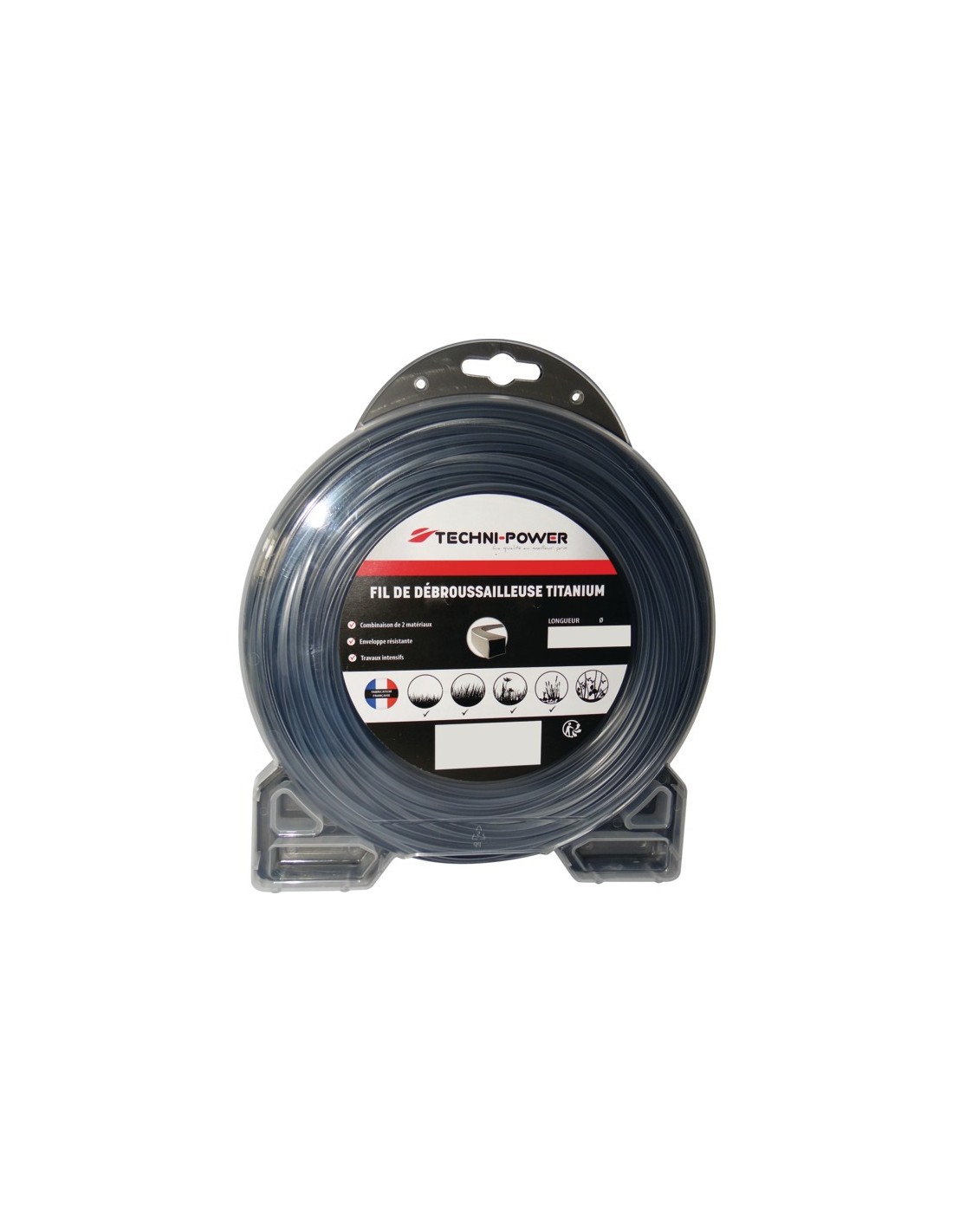 FIL DE DEBROUSSAILLEUSE CARRE DOUBLE PEAU TITANIUM Ø 3,5 MM / 16 M TECHNI-POWER