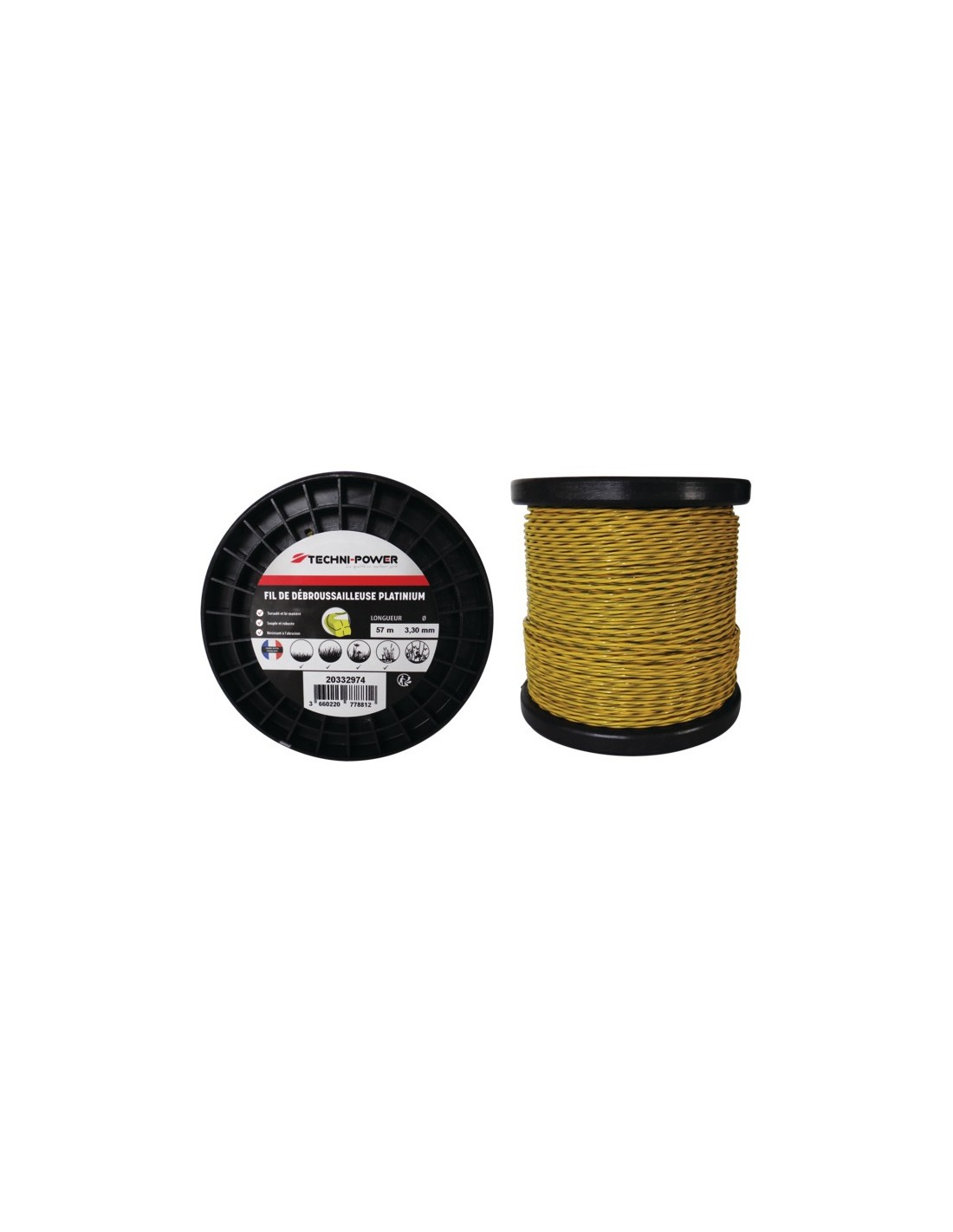 FIL DE DEBROUSSAILLEUSE TORSADE PLATINIUM Ø 3,3 MM / 57 M TECHNI-POWER