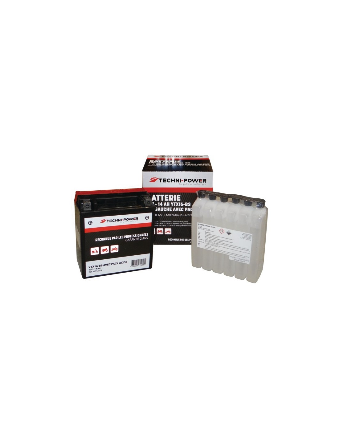 BATTERIE TYPE YTX16-BS + A GAUCHE AVEC PACK ACIDE