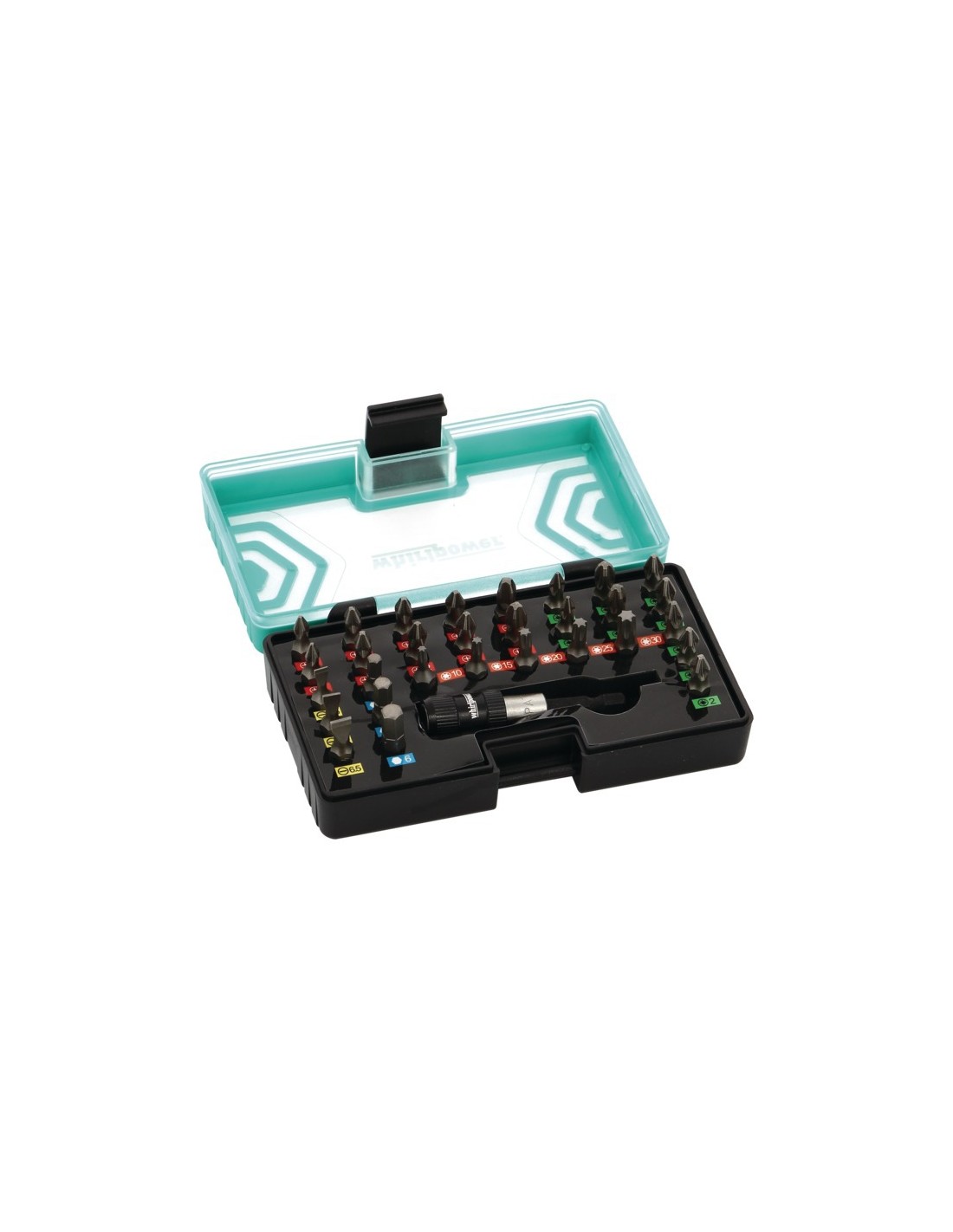 EMBOUTS DE VISSAGE 1/4 CODE COULEUR ACIER S2 EN COFFRET DE 31 PIECES