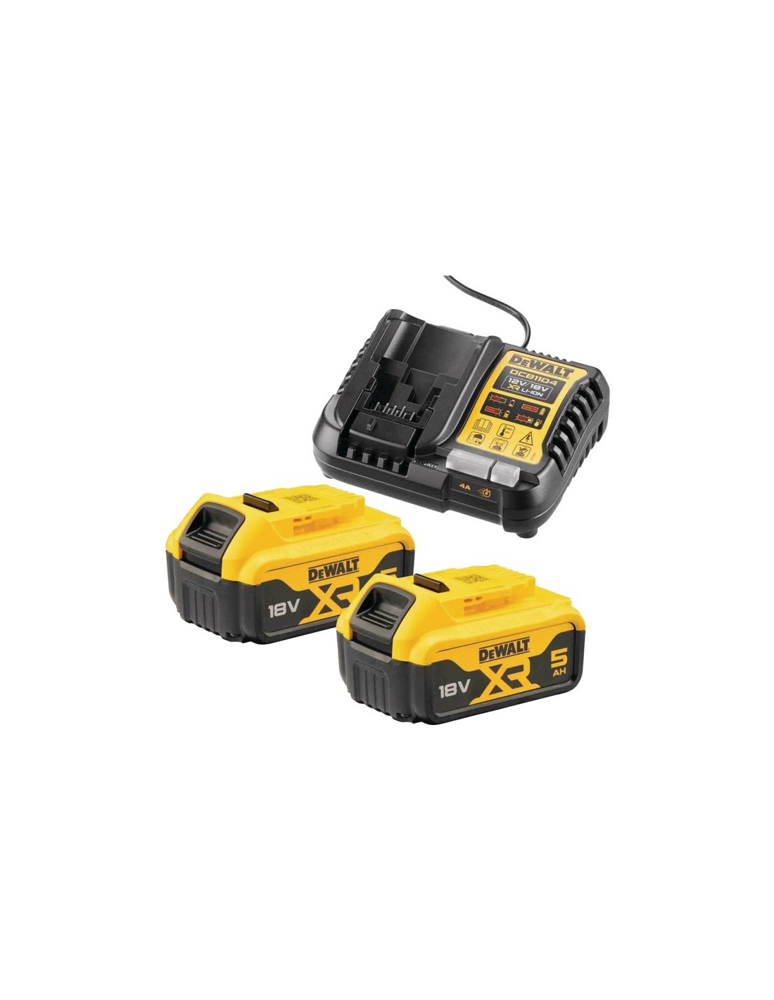 PACK 2 BATTERIES XR 18V 5AH LI-ION + CHARGEUR DCB1104P2-QW DEWALT