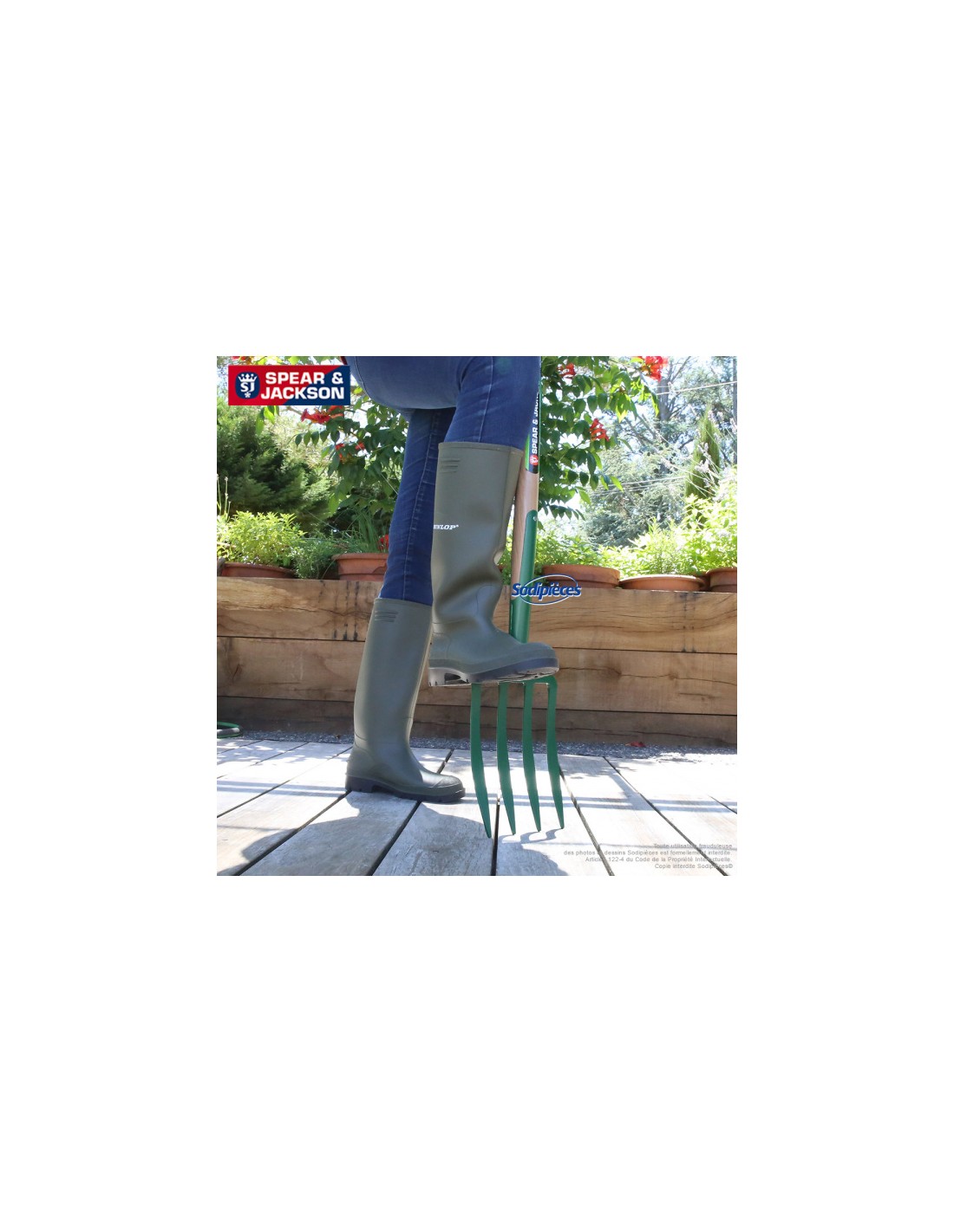 Dents spatulées pour les terres légères et les sols sableux. La fourche à bêcher est également utilisée pour arracher et replanter les végétaux, enlever les pierres, bêcher au pied des arbres pour faire remonter les larves nuisibles ou enfouir un couvert végétal comme engrais vert.