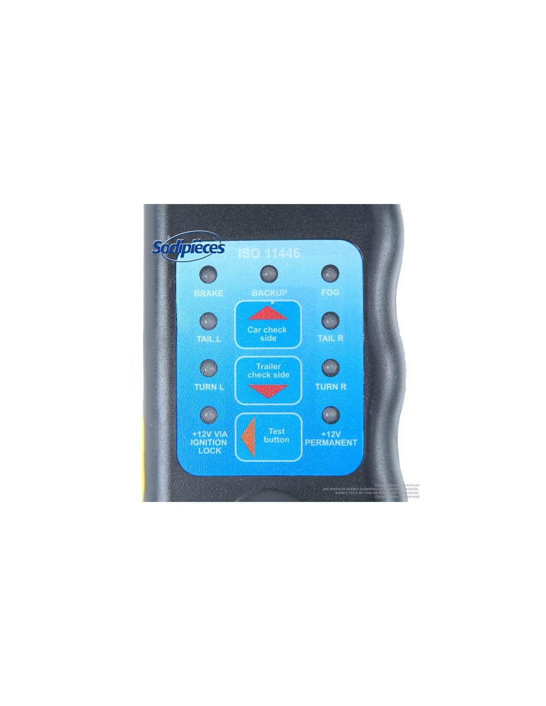 Ce testeur a une prise à 13 broches dans chaque extrémité pour être connecté à la prise de la remorque ou de la voiture. Il indique rapidement si le câblage est endommagé. Egalement utile pour vérifier les caravanes et supports à vélos.