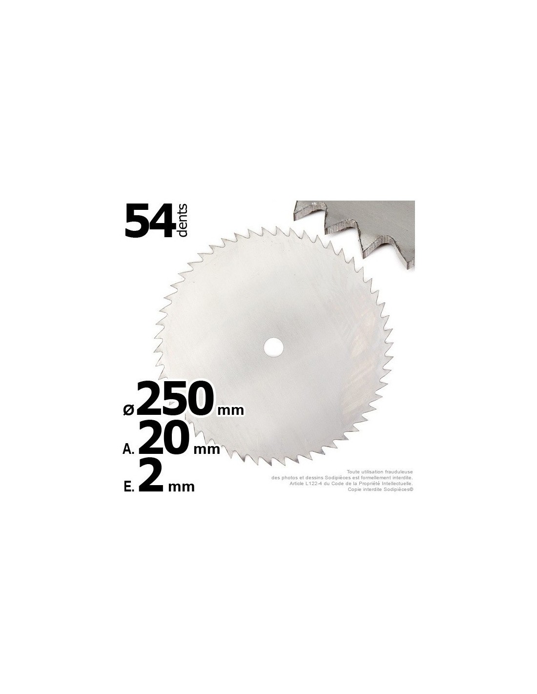 Lame 54 dents scie. Ø 250 mm. Al 20 mm. Ep 2 mm.